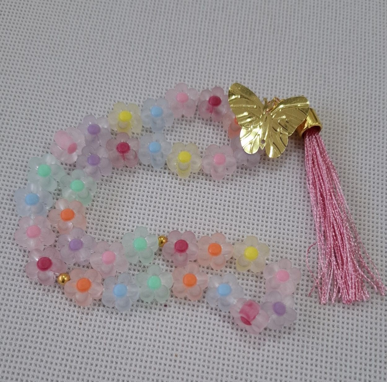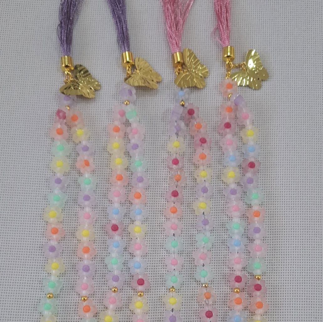 تسبیح پاستیلی ریشه دار با طرح گل و رنگ های جذاب با آویز پروانه مناسب خانم ها و دخترخانم های عزیز