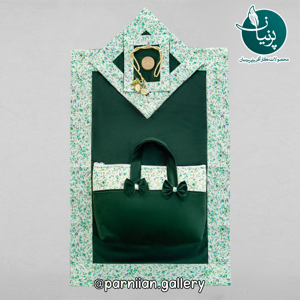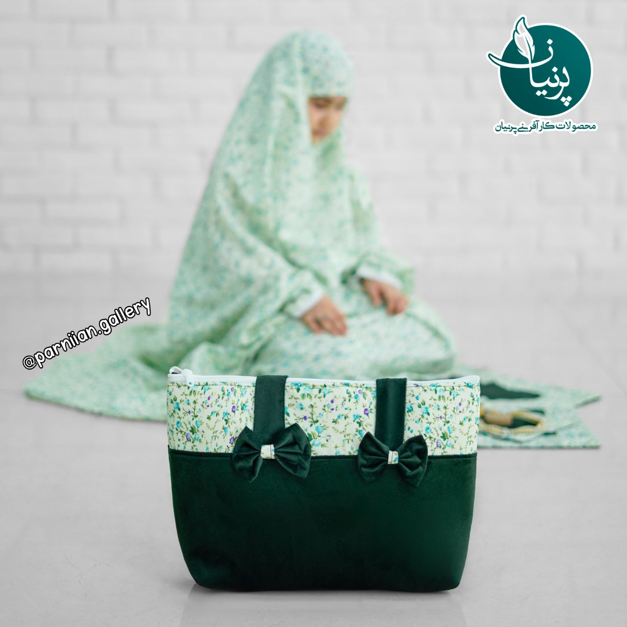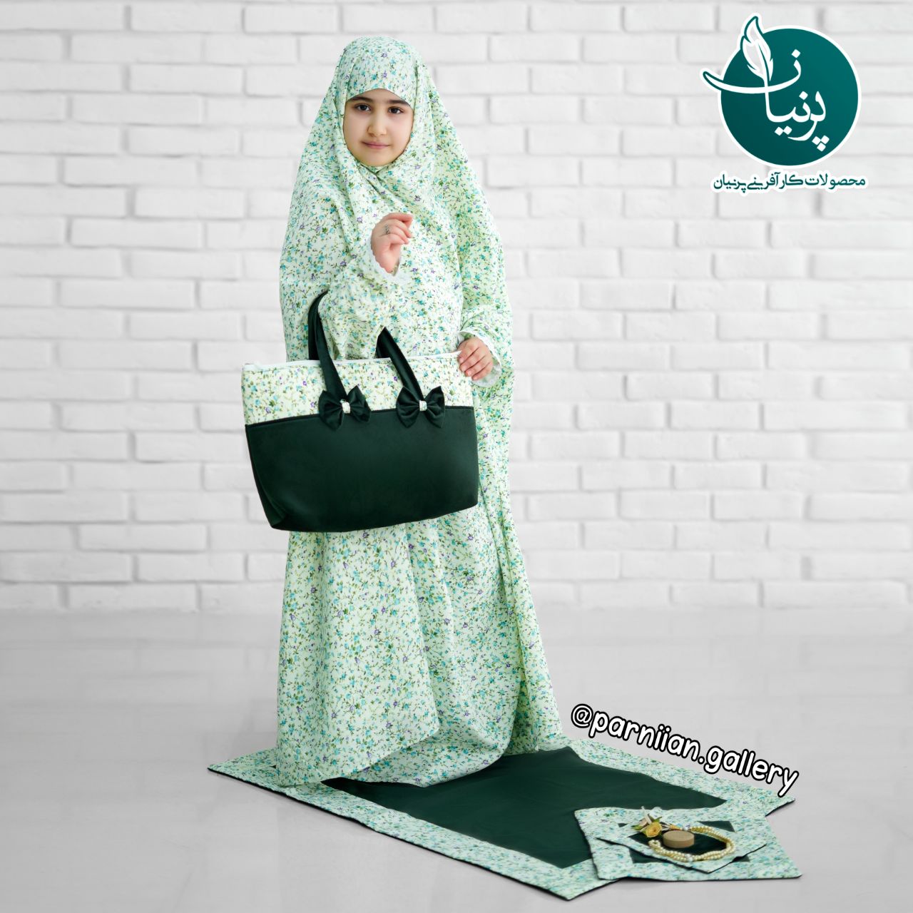 چادر نماز این ست با دوخت ساده و گلدار است.