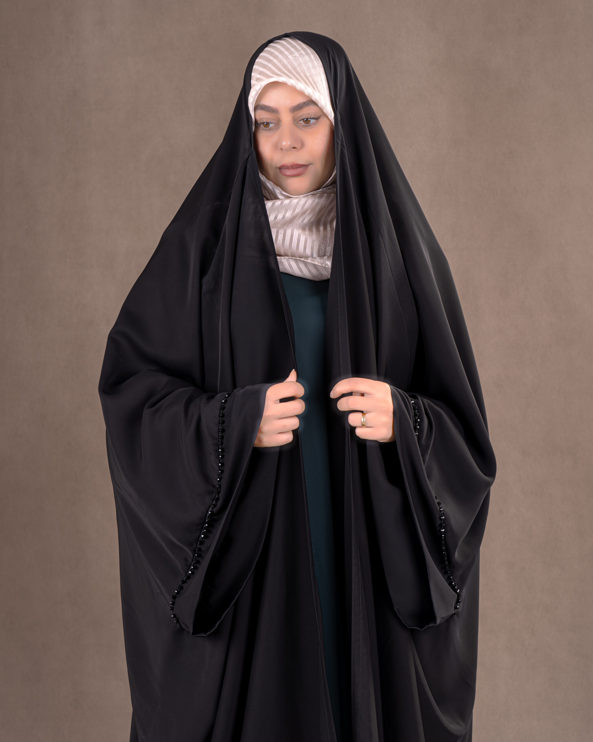 رنگ مشکی عمیق با جلوه ای شیک و ماندگار. با پارچه ندا درجه یک تجربه ای متفاوت از پوشش اسلامی را احساس کنید. این چادر بسیار سبک و خنک است و نیازی به